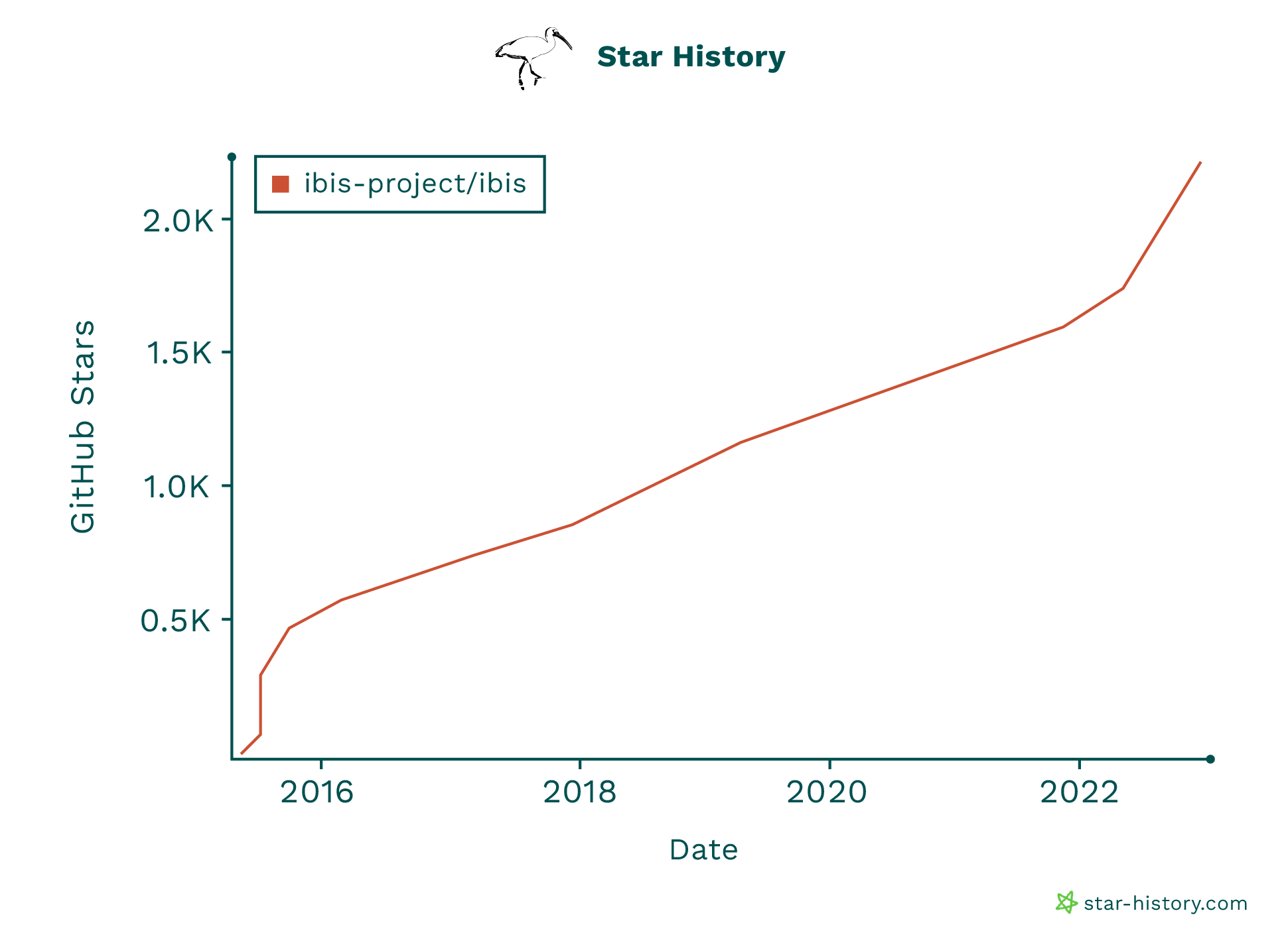 The rise in popularity of Ibis isn’t only displayed by the number of times it’s been downloaded, but also by the project’s support on GitHub. The project has been starred over 2,200 times, with new contributors onboarding regularly.
